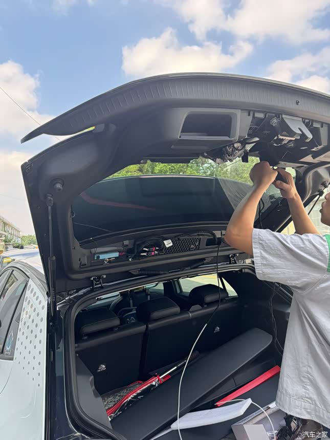 1.要把整个后盖的内部装饰板全部拆除下来,需要穿线束;同时还要把后备箱左侧内部装饰板拆除,需要线束与原尾灯线束连接。