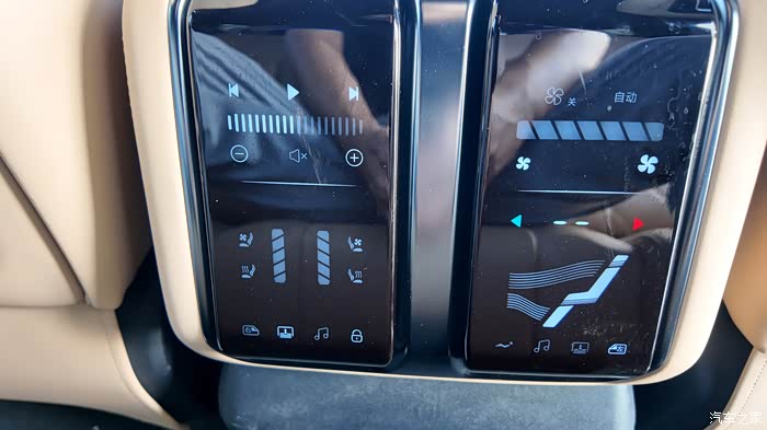 后排的座椅通风 加热 分区空调 操控面板