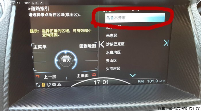 第五步:按“下键”找到红圈里面的“乌鲁木齐市”按“确认”键进入如下图;