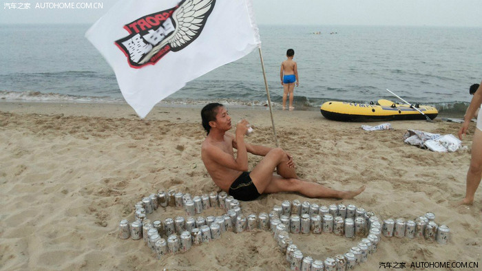 小肚吃的饱饱的,准备下海,翡翠岛门票75元每位,由于本群热爱野景,抄小路到达了黄金海岸,不过人还不少,但是效果是一样的,海浪也是哗哗的,人都是乐的嘎嘎的,本车队的那面大旗,高高竖起大海边,好多车队也来捧场拍照,自由翼也有了属于他的番号