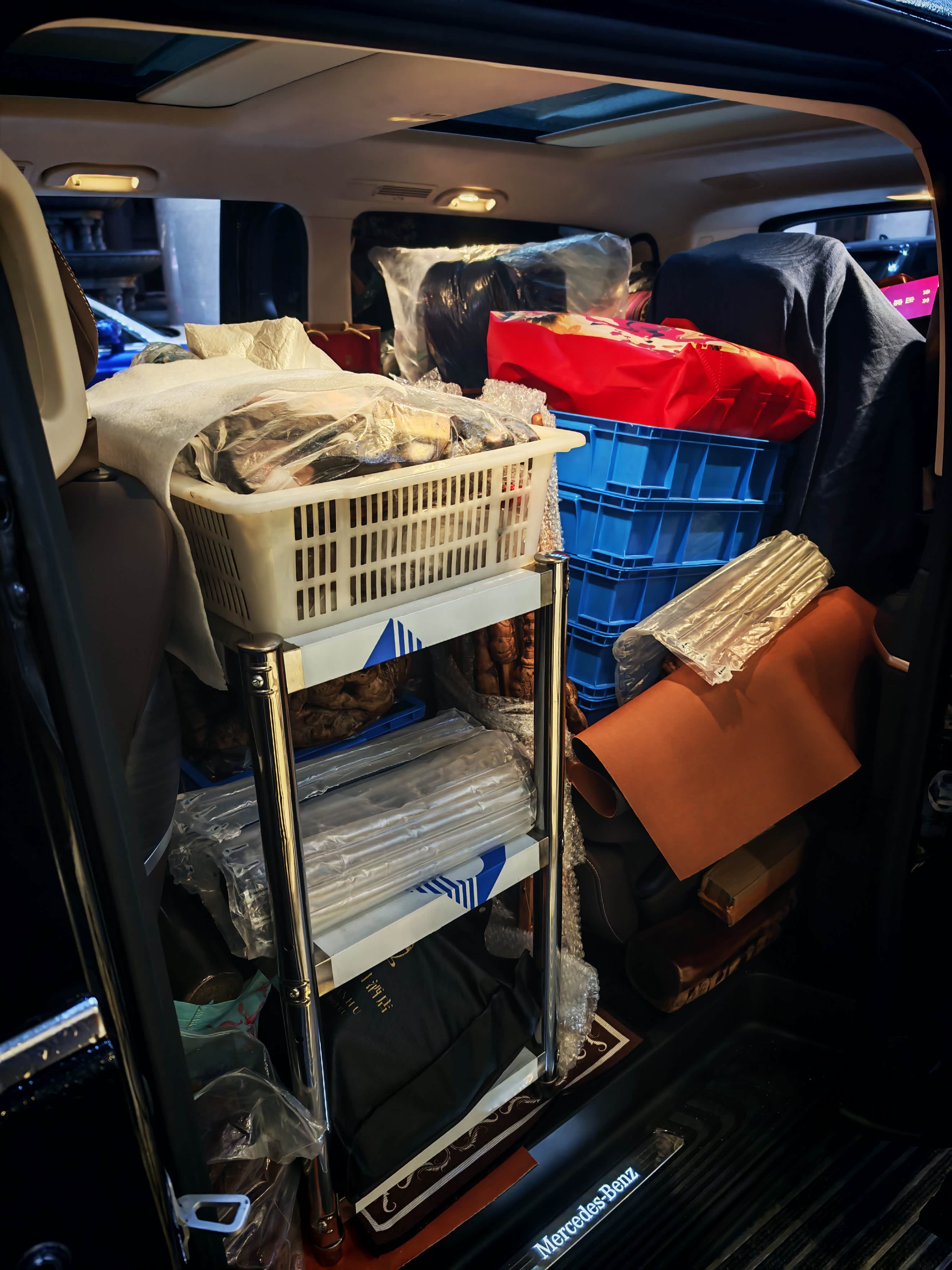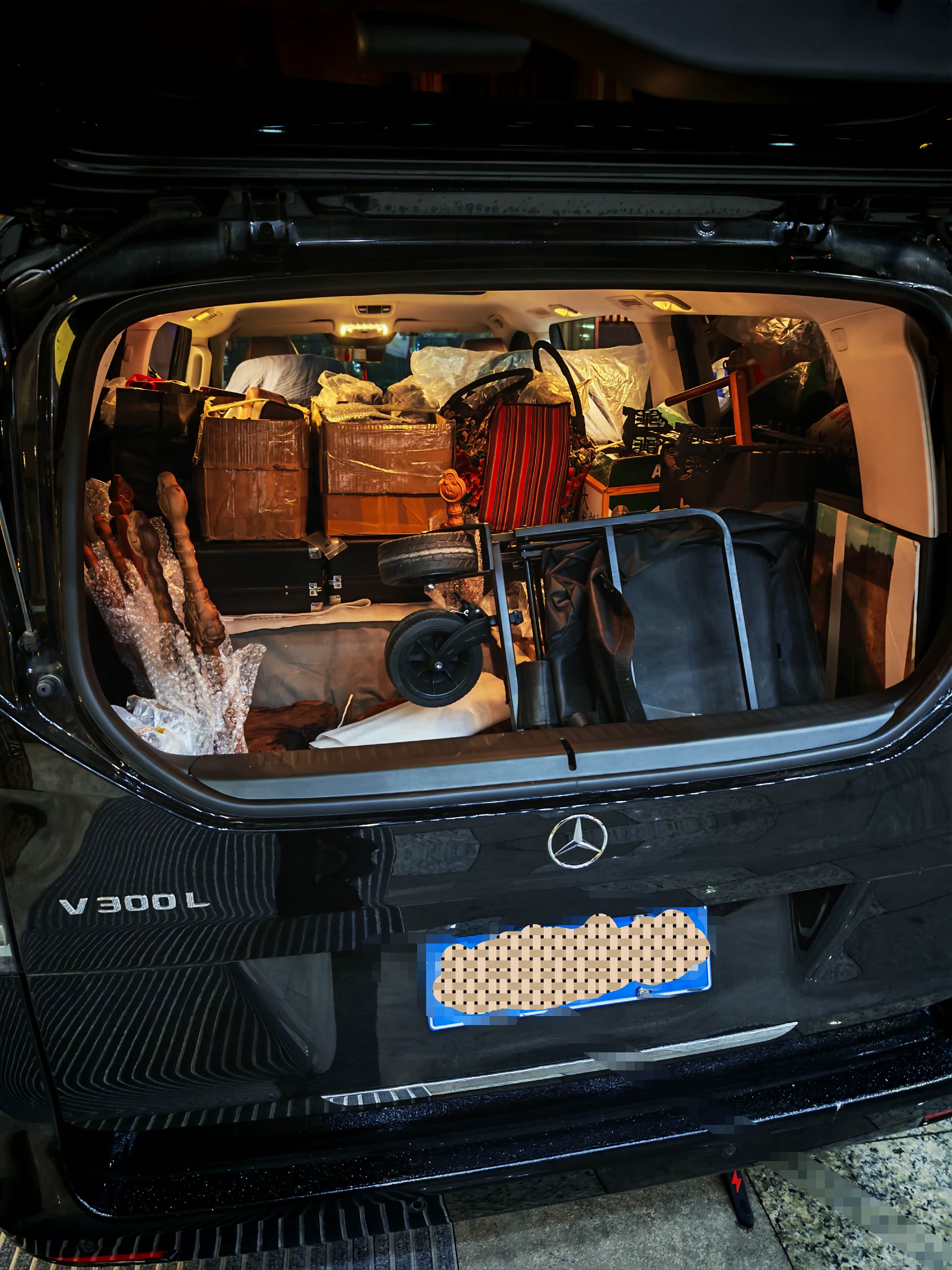 之前皇冠陆放已经很能装了,但越来越们够用了,每次行李都把顶篷挤得满满的。现在换了V300L,比原来多装一半,而且还很富余!真的太好用了!