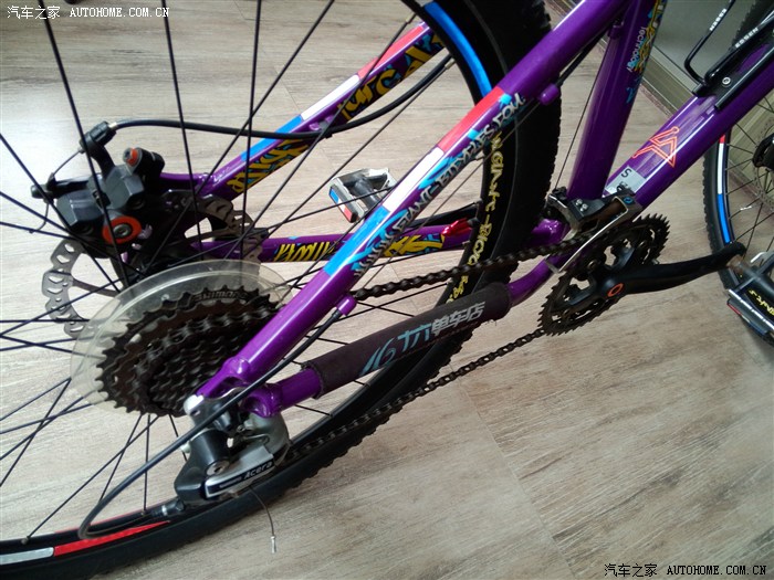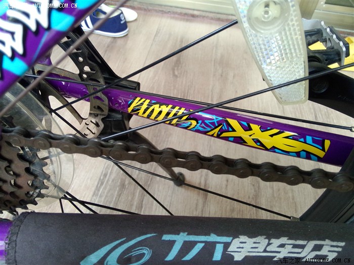 紫色的配色偏小众,听店主说澄海(我们那)才两辆,车架是ALUXX的变速为前三档后八档,前叉没有锁的,总的配置一般般,毕竟只有两千。