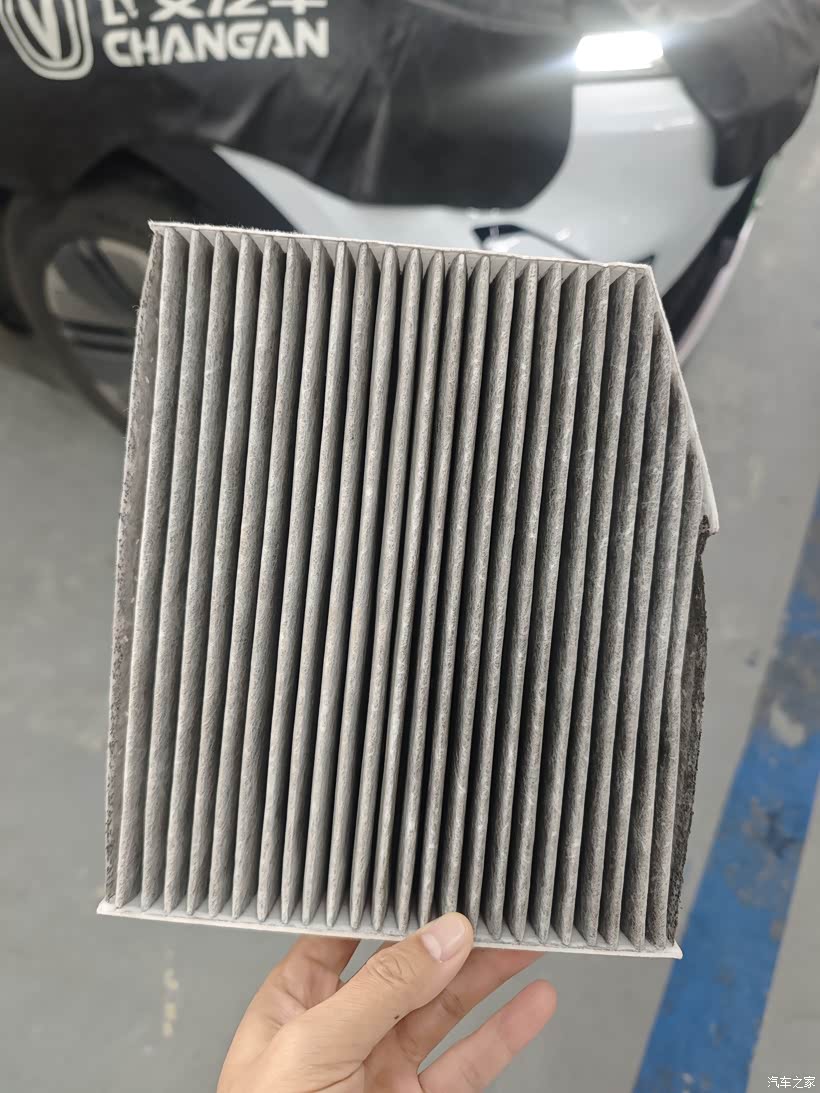 第一个项目是更换空调滤芯。技师拿来卡扣起子,小心翼翼地拆开副驾驶手套箱,当旧滤芯被取出来时,我着实吓了一跳——表面布满了灰尘和细小杂物,难怪最近开空调总觉得风量变小,还隐约有异味。技师递来三个新的原厂滤芯,按照箭头指示方向稳稳装入卡槽,确认密封到位后,又把手套箱复位,整个过程只用了20分钟。