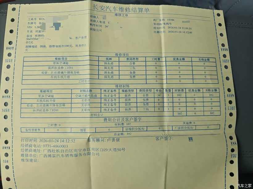整个保养过程耗时3小时11分钟,结算时我惊喜地发现,整个二保费用2元,因为之前在App抽奖得了个维修的代金券,全额抵扣100元,所以只用2元钱就得到三个空调滤芯了,工时费因为有保养权益券直接全额抵扣了。期间4S店还提供了免费洗车和简餐,服务特别贴心。看着保养完毕的爱车,开起来感觉更顺畅了,空调风量也明显变大,这次保养体验真的超出预期。也让我深刻体会到,定期给爱车做保养,不仅能解决小问题,还能延长车辆寿命,这笔钱花得太值了!