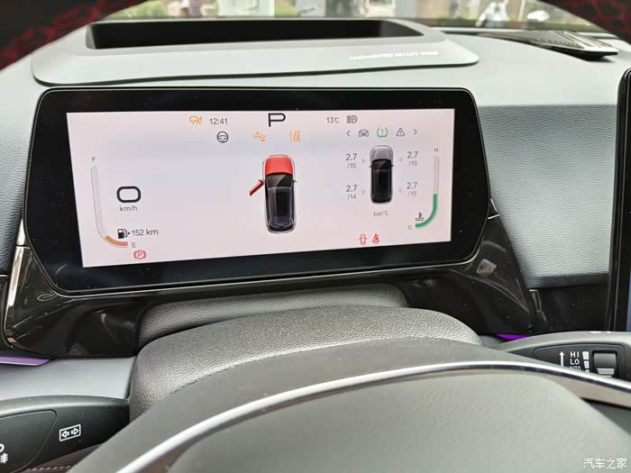 胎压一般情况下有四个胎花着地就算正常,魔方标准胎压标注是2.2bar,推荐2.3-2.5bar,降低滚阻,省油!注意,胎压标准是静态胎压哦,就是车静放一段时间的胎压值,如果不知道自己的车辆该拥有几个胎压,建议你在车辆的B柱上查找。我把胎压调到了2.7bar,这样天再冷一些,就到了我理想中的2.5bar。