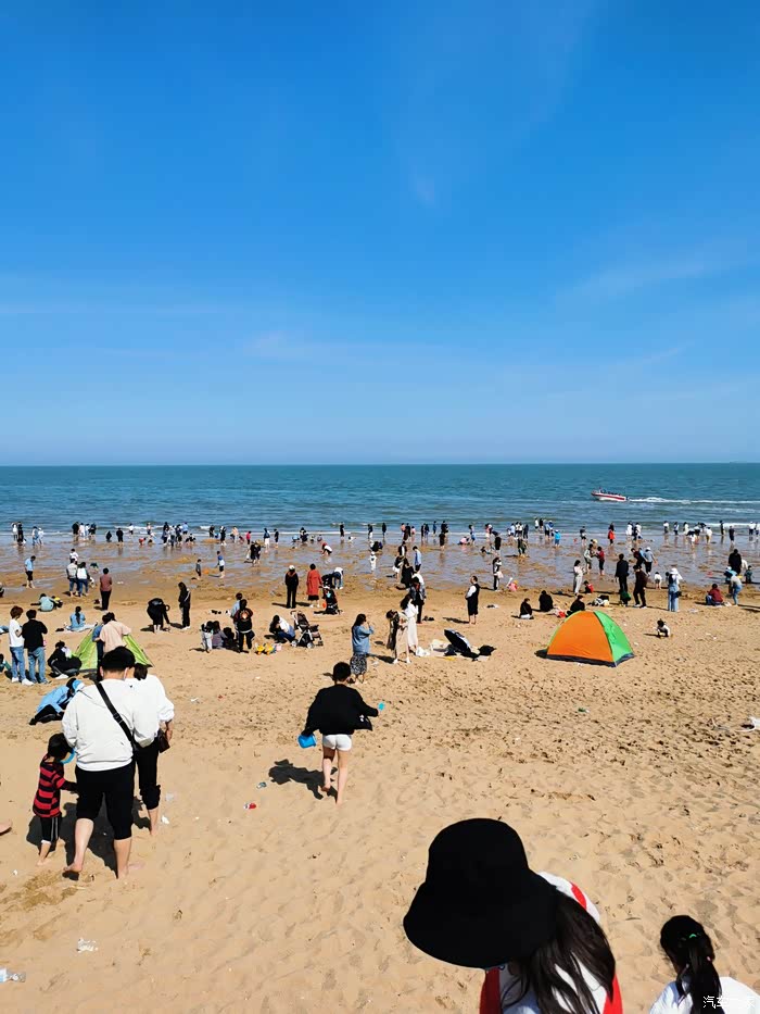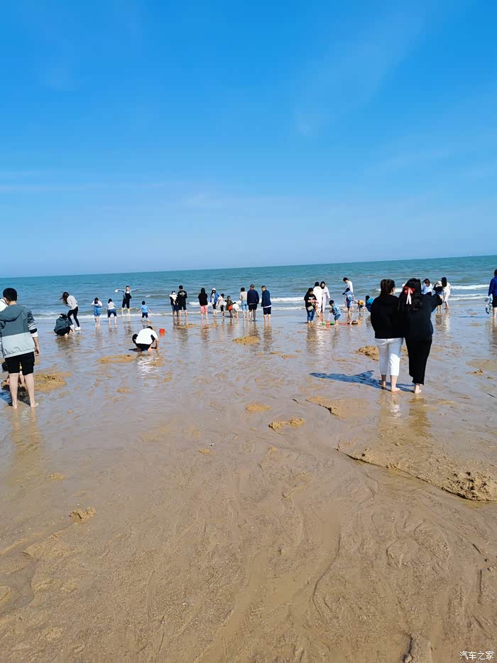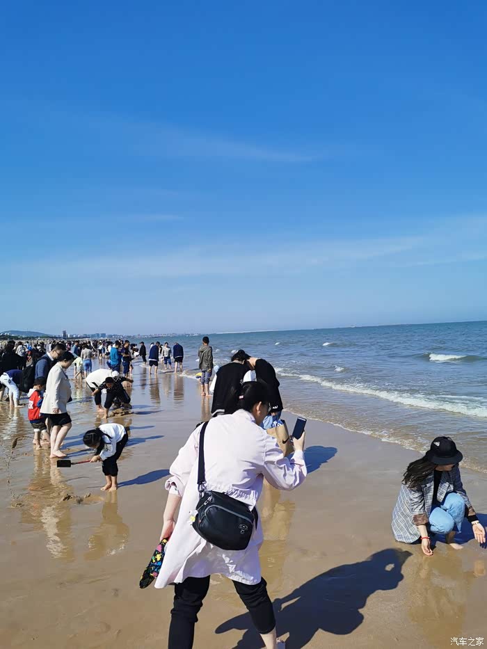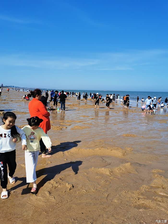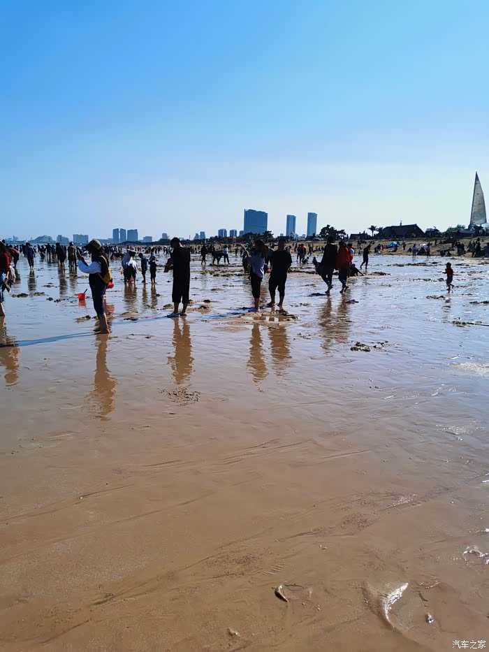 来,看看沙滩上的景色,确实退潮了很多,但完全没有机会赶海。