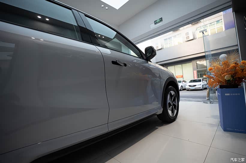 我个人比较喜欢这种简约时尚的车型外观,银河E5的整体外观我可以打8分,车头和车尾可打9分以上,美中不足的是它的侧车身线条不够流畅。
