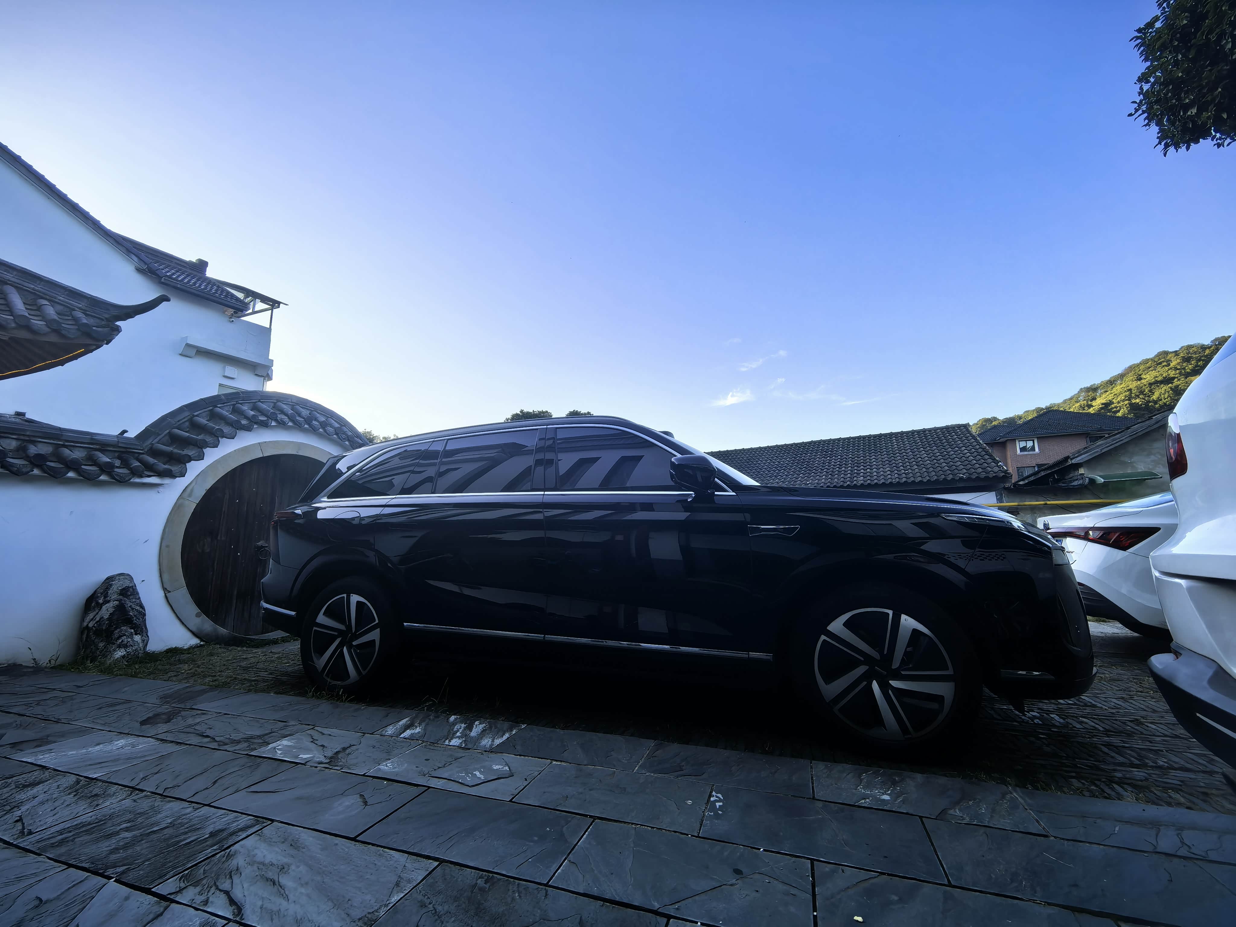 在古镇门口也给蓝山拍了几张,车和老房子放一块儿,还挺有感觉的。