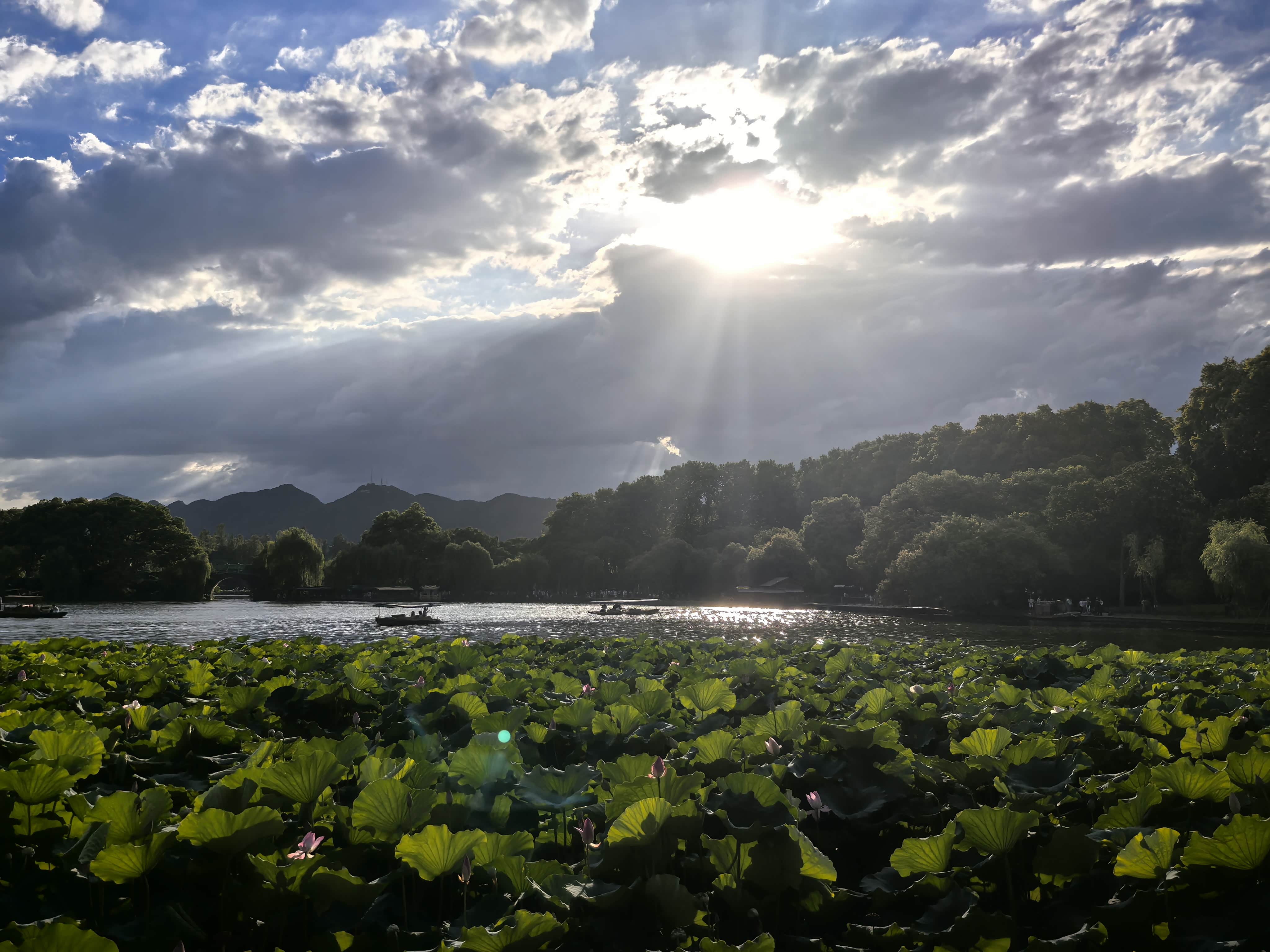 到杭州歇了会儿就去西湖了。那湖水真清,周围山围着,别提多好看了。我们沿着湖边慢慢走,“三潭印月”“断桥残雪” 这些有名的地方都瞅了瞅。傍晚太阳快落山的时候,湖面上金光闪闪的,美极了。