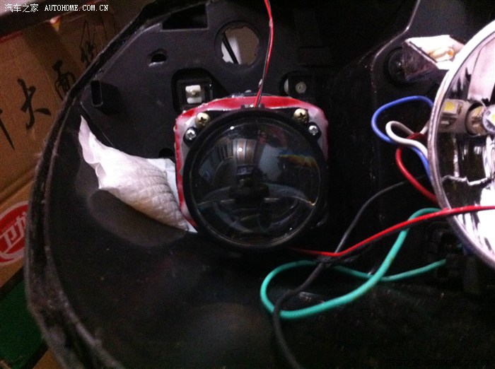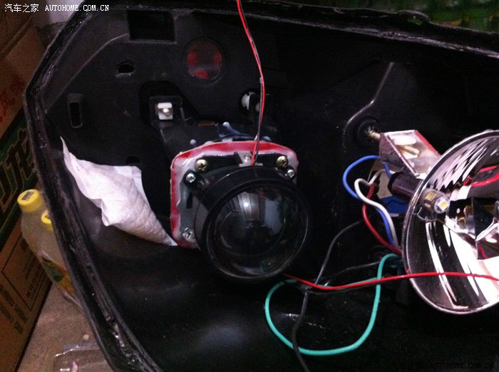 接大灯的线可以费了一般周折了!最后还是从别的地方请来个专业师傅给弄的!要是按照H4的接线图恐怕现在还接不好! 简单的测试下,效果真心的不错!