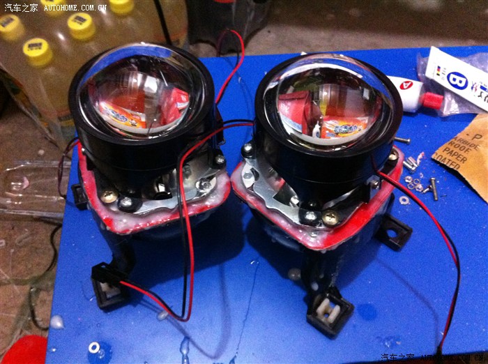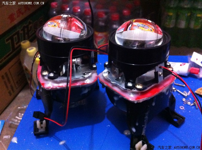 两只大灯,透镜全部安装到底座上了! 这一天就干了这么点的活!真心的费事呀!