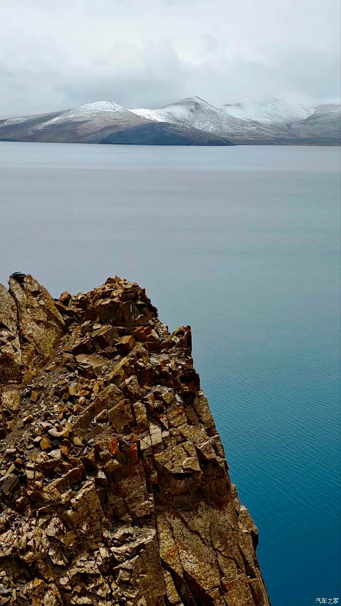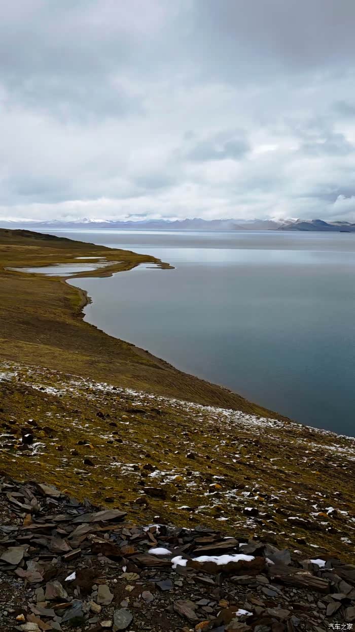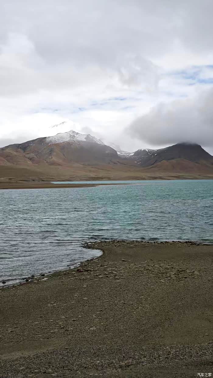蒙达拉山下来,很快可以看见一个大湖,号称世界海拔最高的淡水湖---普莫雍措,西藏六个雍措之一,湖面海拔5010米。看到普莫雍措的环湖路地势高一点,于是先往环湖路开了一段。普莫雍措湖面比较平静,湖水非常清澈,远处雪山绵延,景色漂亮。可惜此时天气不好,一直飘着雪花,于是回到219国道继续西行。
