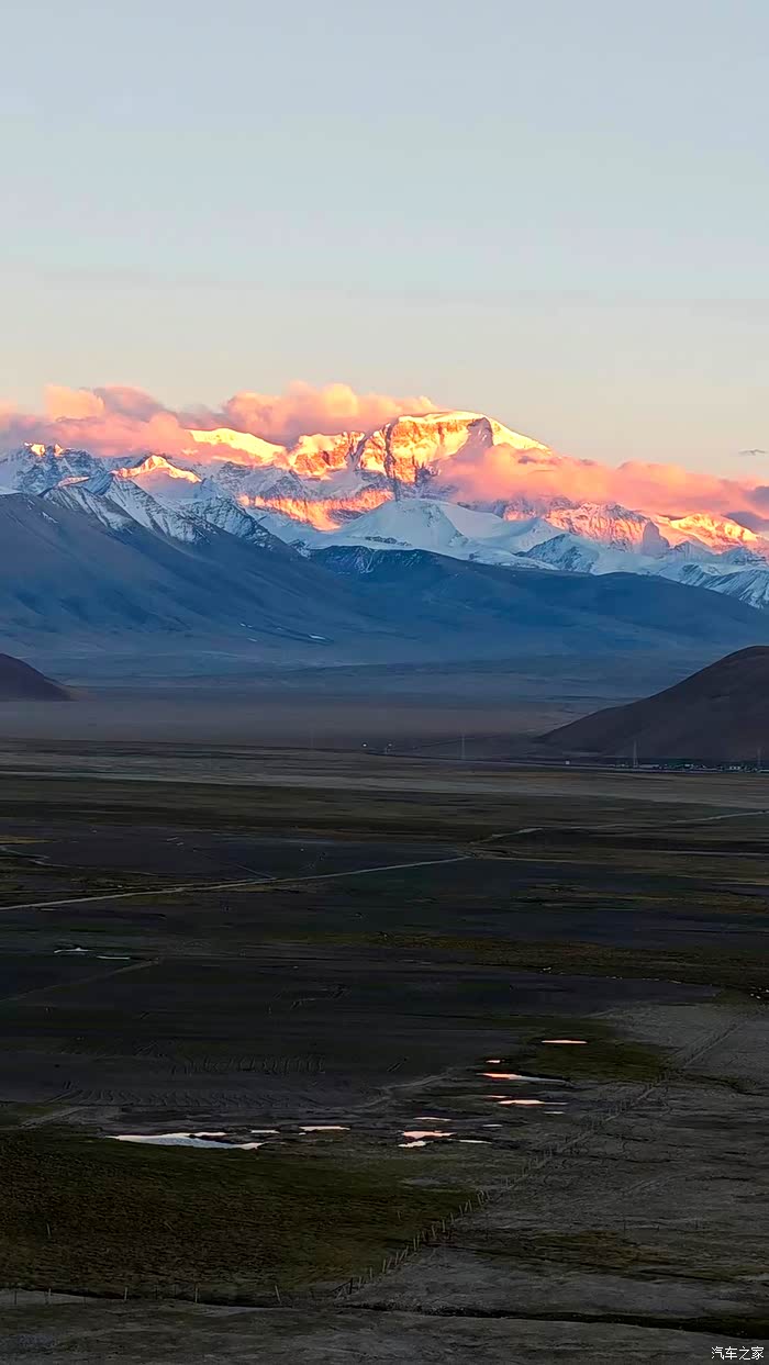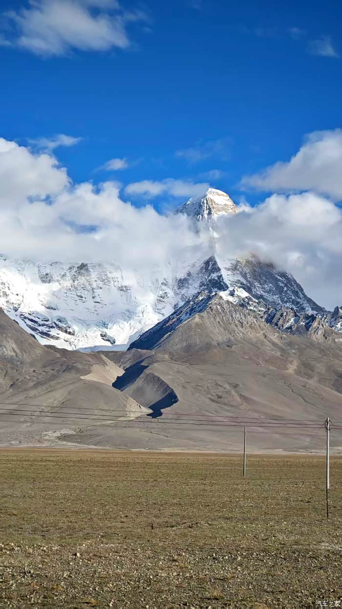 时间不早不迟,没有直接进珠峰。趁现在天气好,先去前方50公里外的岗嘎镇关帝庙。这里可以看见珠峰,但实在不能叫珠峰观景台,离很远还只能看到一点山尖。还不如再向前一点的公路边看到得多。但是这里看8000多米的卓奥友峰还是相当不错的。一直等到落日,本想在这里露营,但是上面风实在太大,不合适,只好回到珠峰北大门。