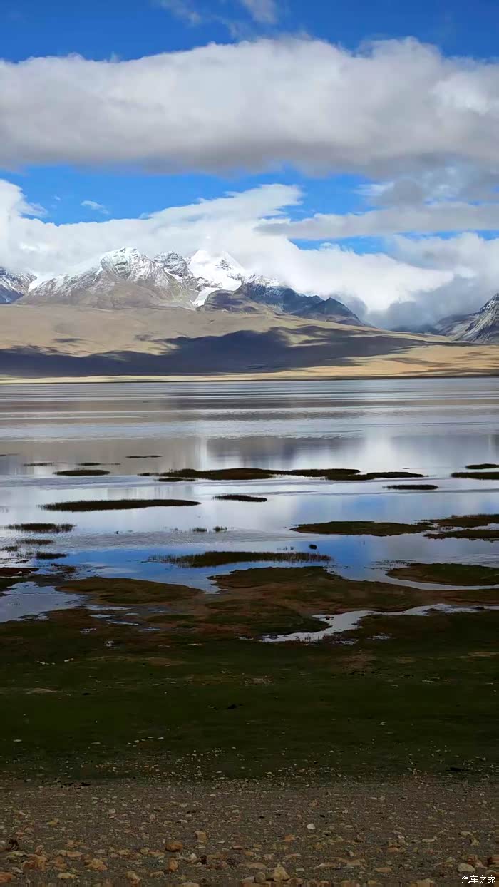 因为高反,也是路程安排,在嘎拉乡离开G219向左走G562前往海拔低的亚东县。先到多庆措,虽然还是大风,但是遇到了太阳和蓝天。多庆措是湿地,湖水不深,但是蓝天白云和雪山湖泊就是好风景的绝配。