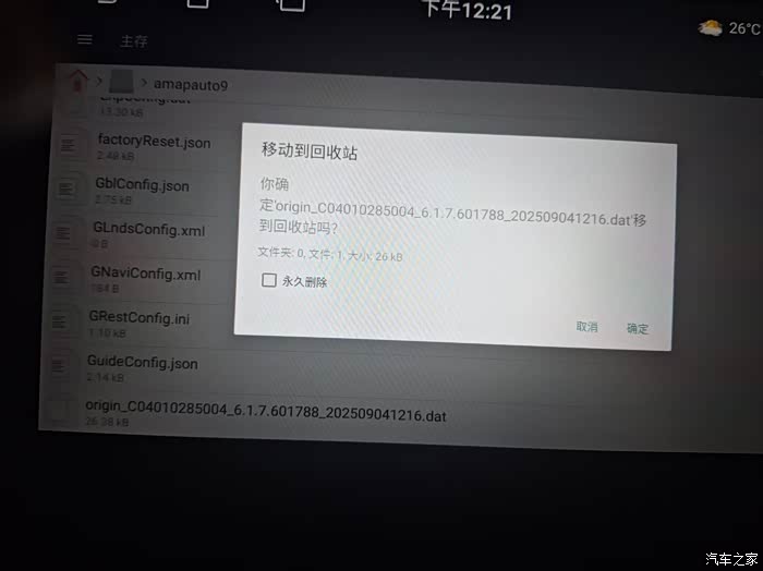 这是没升级之前的导航,下面开始操作,用U盘拷贝三个文件1、去高德官网下载车机版8.1地图。2,下载一个文件管理器,我用的是(File文件管理器3.2.apk)。3,是最关键的一个软件,(安装这个软件再安装其他.apk),有它就不用电脑和u***调试模式了。参考这位大神的帖子https://club.autohome.com.cn/bbs/thread/b210e7cc05746e50/106904973-1.html。软件都可以在大神提供的链接里下载。