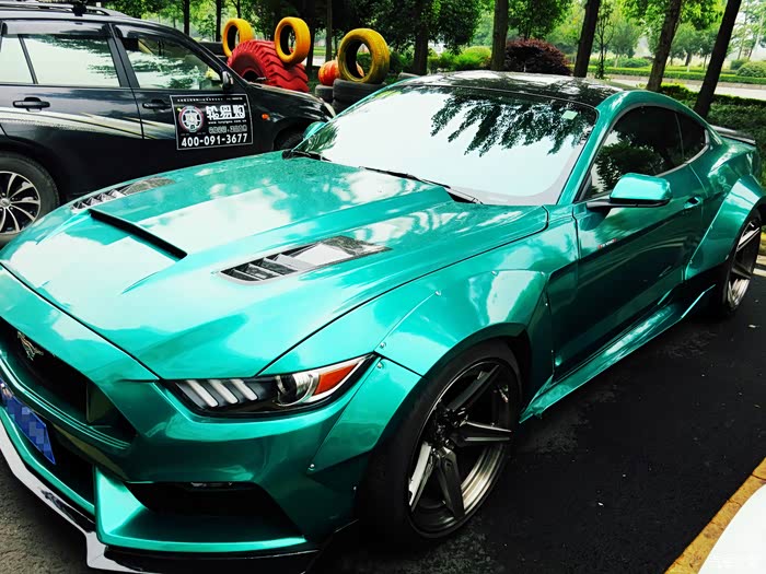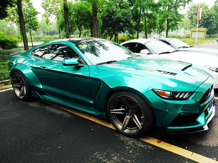 改车时一位顾客的福特宽体野马.回头率颇高.