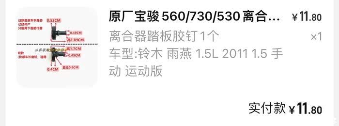 最后找了一款宝骏原厂的离合器踏板胶钉。