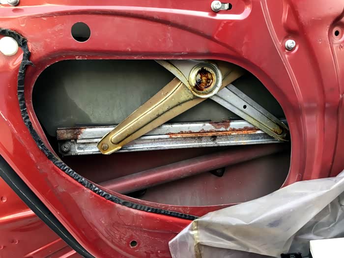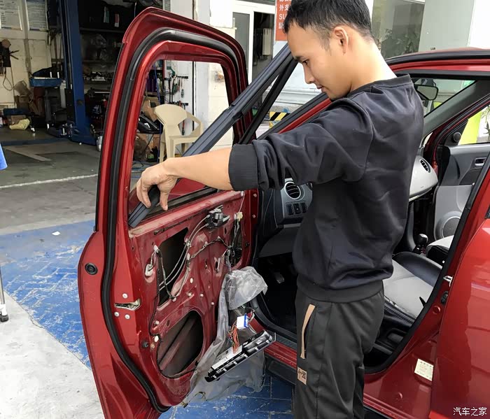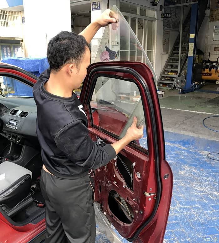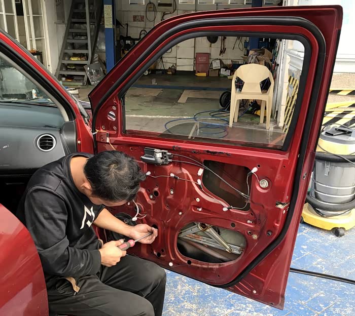 先换左前门,工程量比较大,需要拆内饰板和车窗玻璃。