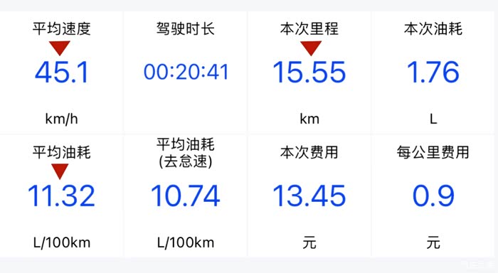 单趟15公里,平均时速45公里每小时,路况通畅。