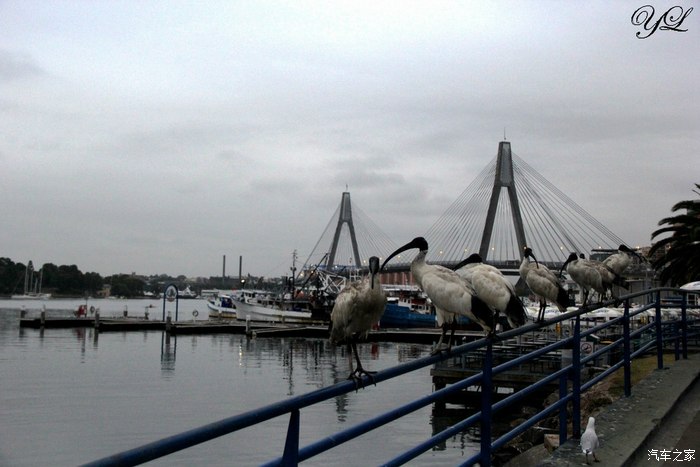 一大早还是阴天,边睡边走,靠着百度地图步行就到达了。海鲜市场的门口栏杆上,站着一排等着捡吃的的长嘴鸟。