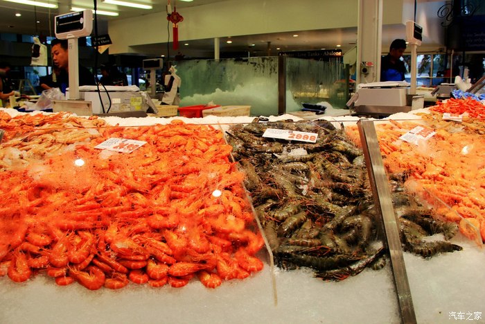看起来确实中国人来的比较多,但价格着实不便宜。各类海鲜整齐的摆在冰块上。货品很新鲜,如果想吃超级大龙虾的话,一定要准备足钱。