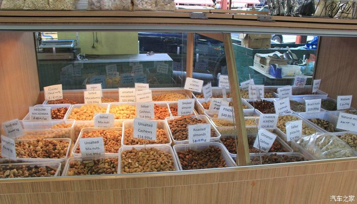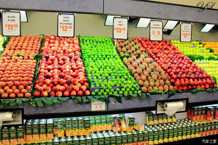 在超市中值得说明的是,如果要买需要用秤现称量的物品,比如水果蔬菜一类,只要把你想买的放进袋子里就好,到了收银台收银员会一起称重算钱,不像国内还需要先在超市里称了贴上标签才能结账,所以当我们第一次去超市准备买水果的时候,还问了半天服务员,他最后告诉我们直接在收银处交款就行,搞得我们