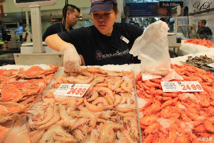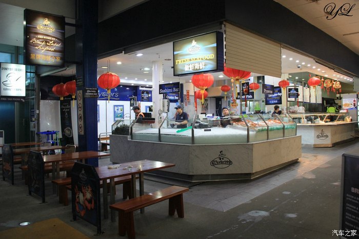 他们才刚刚开市,一个市场中,大概有五家海鲜店,一家水果蔬菜超市,一家面包店,都是玻璃窗的柜台,有公用的餐桌和椅子。鱼市场因被华人点评次数太多,几乎成为华人自助游的必去之地。