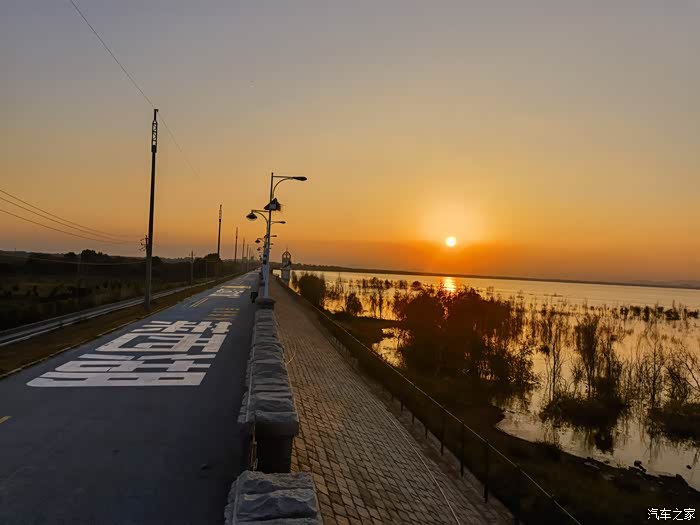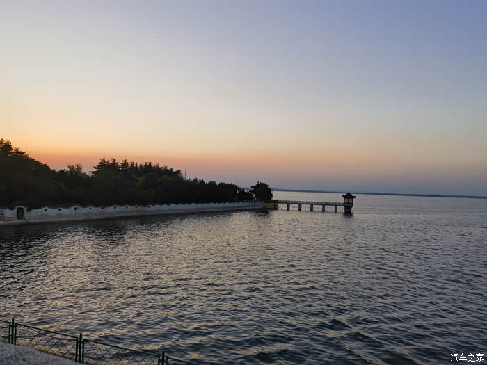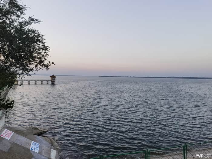 在桥上欣赏了一下莱西湖的壮美。