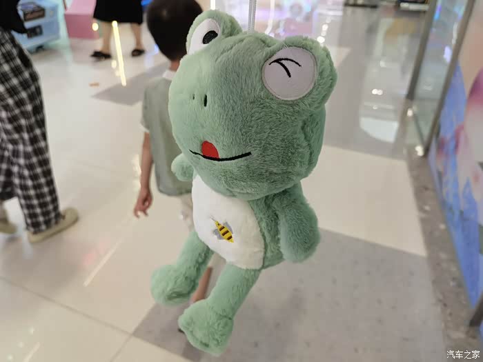陪儿子在娃娃机上奋战了一个小时,终于抓到一只“大青蛙”。