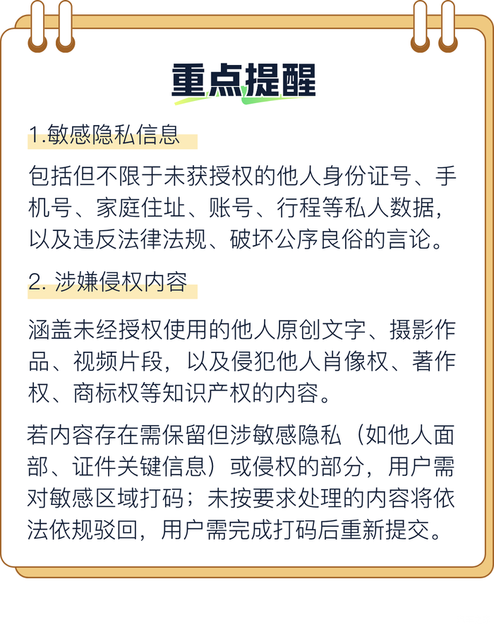 请各位用户务必将敏感隐私保护与侵权风险防范作为发布前提,若因未履行自查义务导致隐私泄露或侵权,不仅内容会被驳回,还可能因侵犯他人合法权益承担相应责任。让我们共同遵守规范,守护论坛的隐私安全与版权秩序。