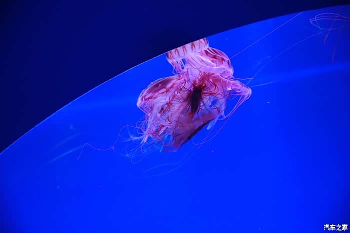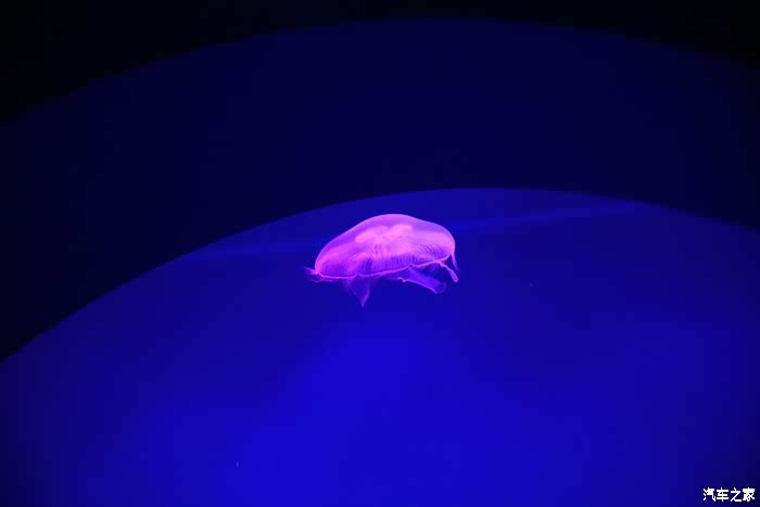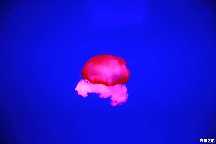 在五彩斑斓的灯光照射下,水母也变的多姿多彩。