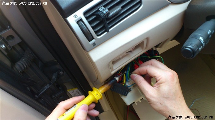 迎宾灯的走线,在内饰板边缘切个灯线直径等值的缺口,这样不影响内饰板复位,再将灯线用扎带固定。