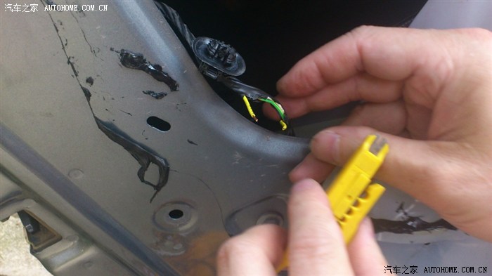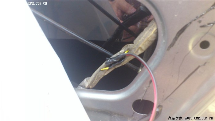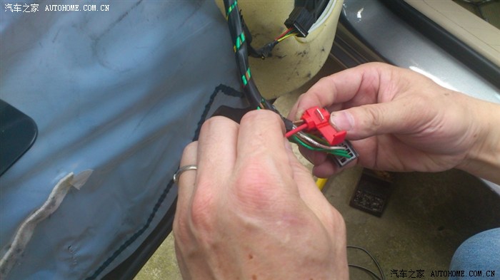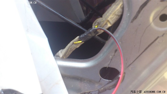 拆下车门的内饰板,找到需要连接的线路并接上迎宾灯的加接连接线。