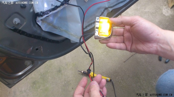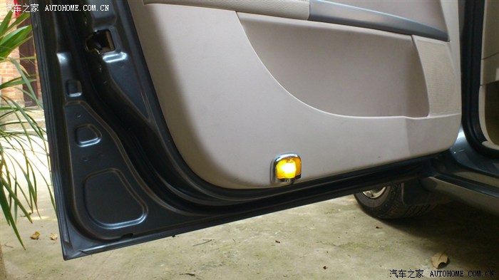 本坛的折腾高手lin_hb在3月份就已经搞了LED迎宾灯http://club.autohome.com.cn/bbs/thread-c-790-20372838-1.html,看了帖子,感觉上部(向后射)的灯不美观,还有车外解锁开门不能亮灯,所以没有心动。4月18日发的“迎宾灯氛围灯终极改造巧取开门信号控制电动门窗电源无毒无副作用”的帖子http://club.autohome.com.cn/bbs/thread-c-790-21883218-1.html终于让我沉不住气。重要的一点是除了迎宾灯氛围灯终极改造巧取开门信号控制电动门窗电源外,配上的镭射东风标志迎宾灯既美观又实用。心动不如行动,4月29 日乘着小长假,在lin_hb的老家完成了加镭射迎宾灯的改装。