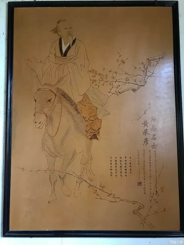 黄公祠入门就是黄承彦的雕像,两侧挂着几幅画