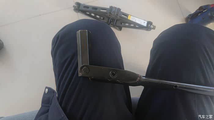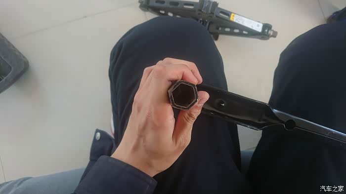 使用自带的千斤顶杆(其实就是一个大号的轮胎扳手)将螺丝拧下或旋紧,备胎更换工作就算完成了。