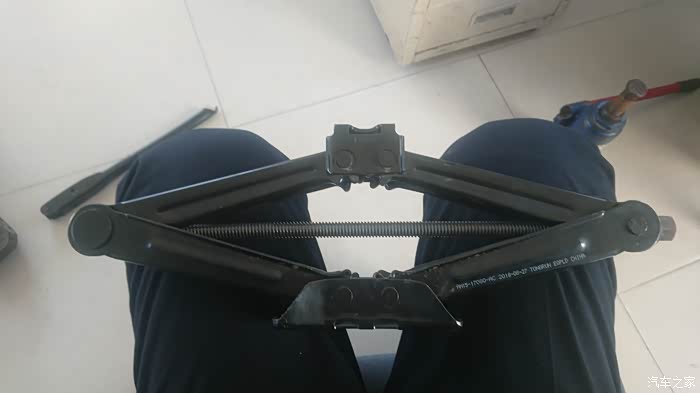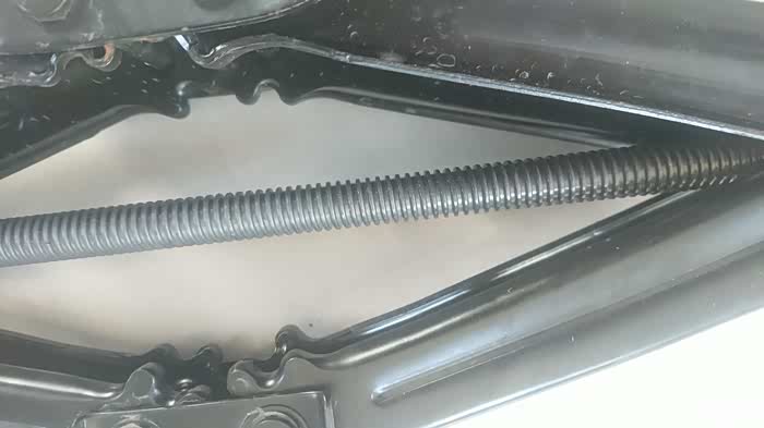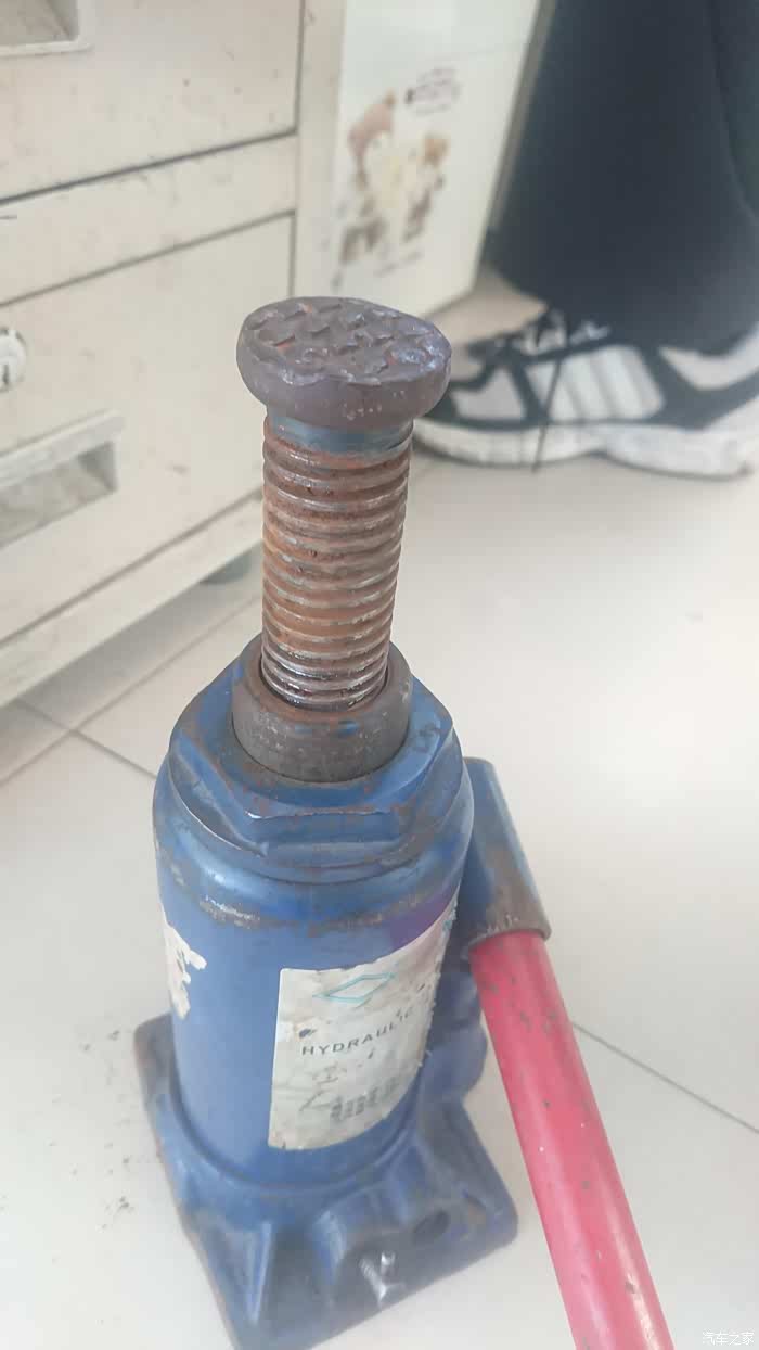 千斤顶分为好多种如液压式螺旋式等等。我的车随车配的就是这种螺旋式的千斤顶,比起液压式它的成本更低便携式较好承载能力较小容易滑脱因此不太安全,而且这种结构也十分脆弱。我又在二手市场配了一个液压式千斤顶,两个千斤顶配合使用。