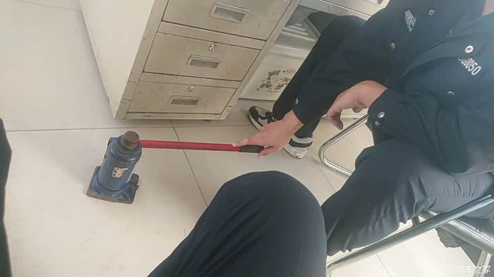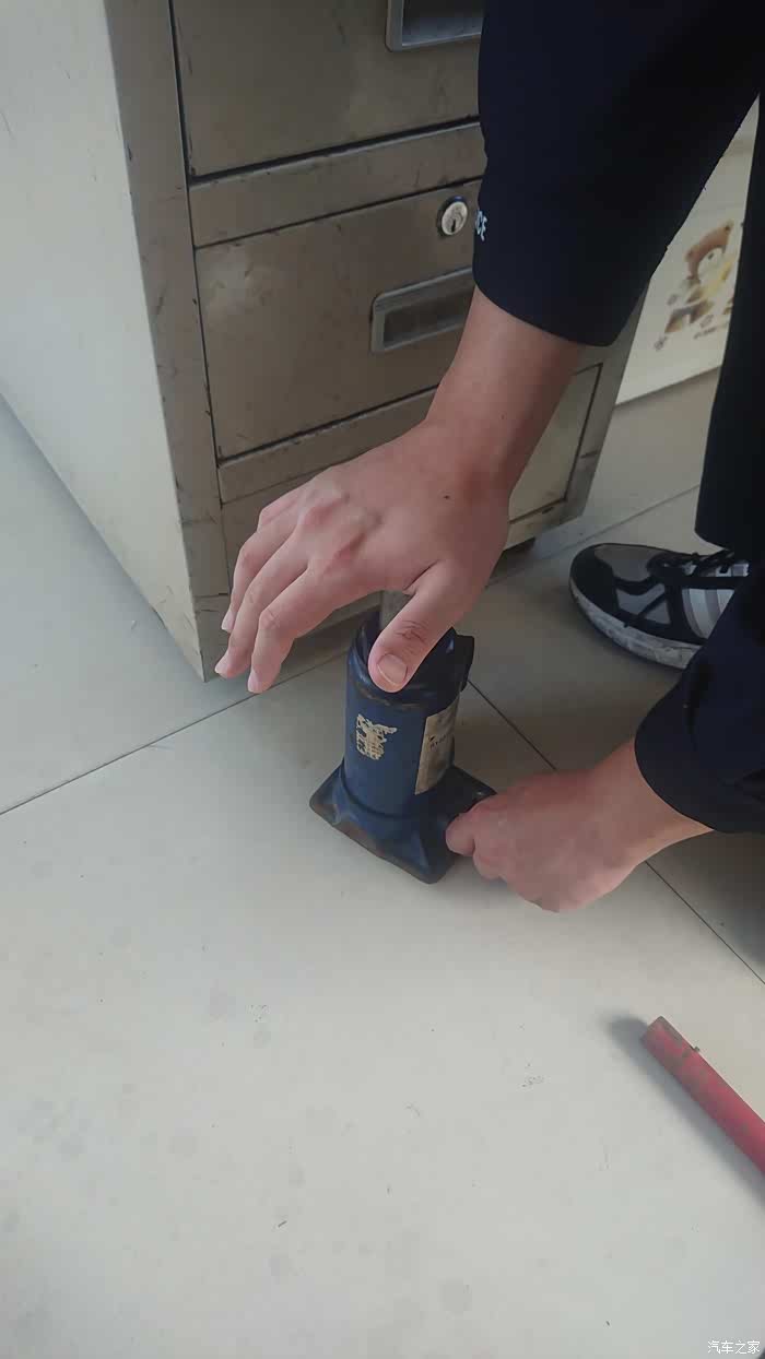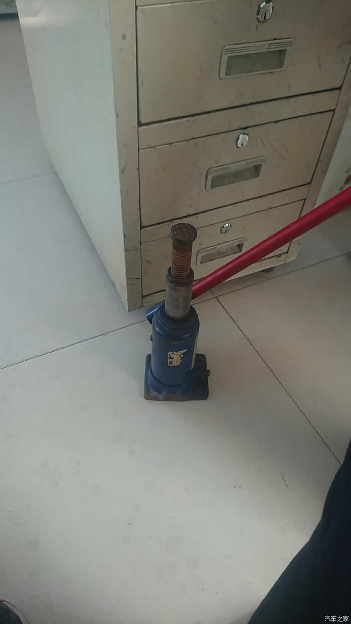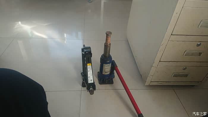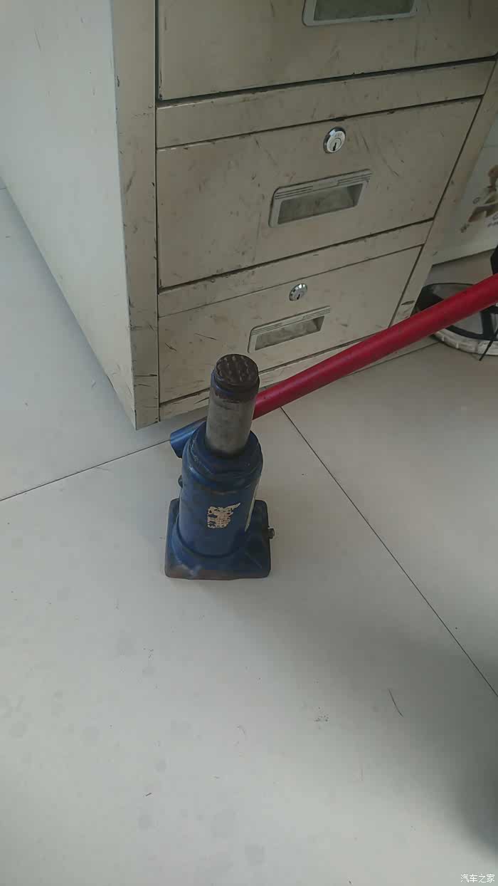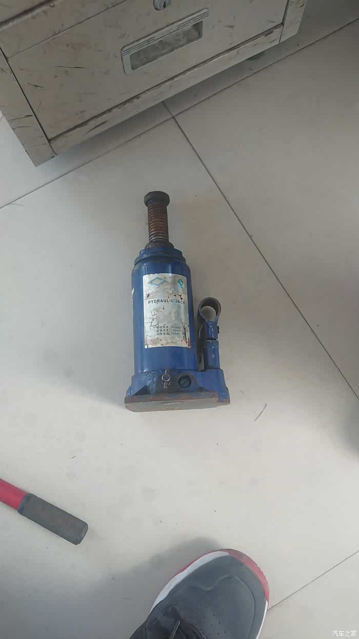 这里注意一下液压千斤顶使用完毕之后要将放油螺丝拧回否则漏油。
