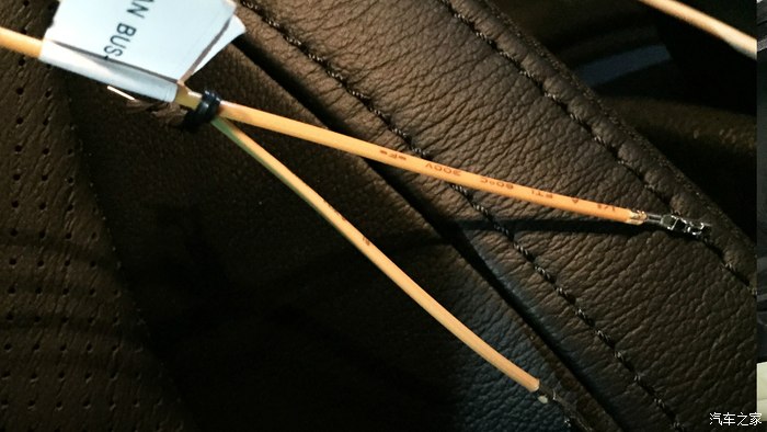 然后用提供的两条CANBUS飞线,其中+线接入刚才接头中的20号针脚,-线并入10号针脚,如果接反了及头上的背光灯是不会亮的。所以需要测试一下机头之后,再做复原。