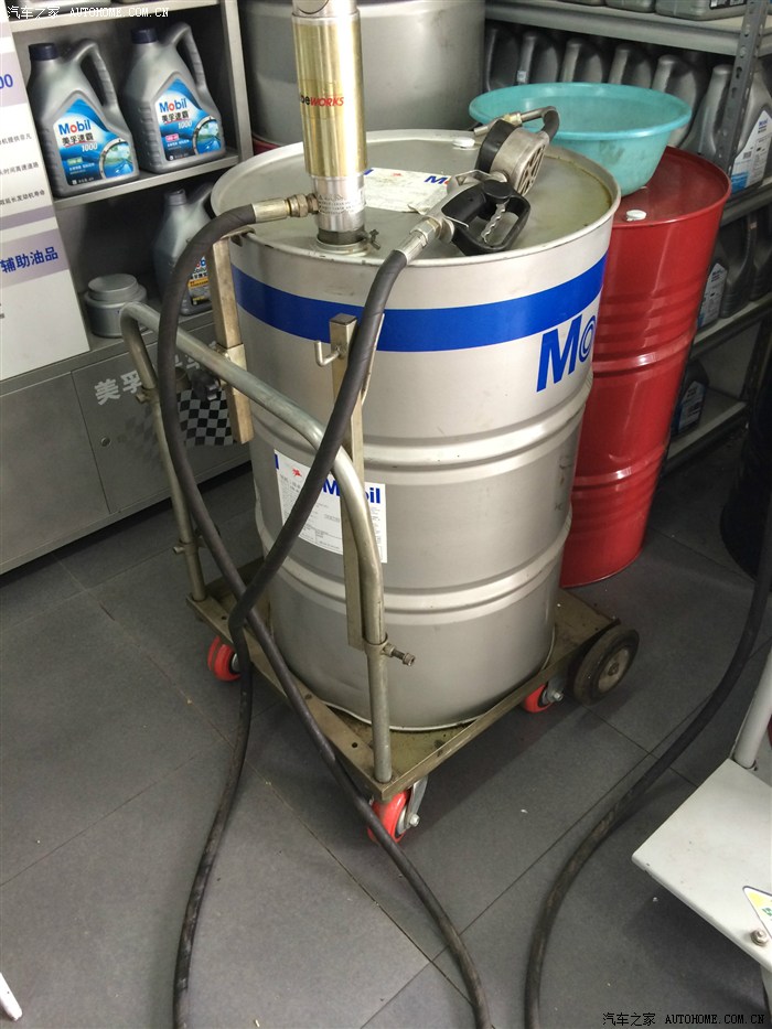 闪亮登场!每次来必用的大桶美孚一号。每个桶有唯一编码,想造假都不可能。而且也避免了买5桶用不完的尴尬,用多少买多少就行,实际这次用了4.3L,后面给我退了0.2L的差价。(旁边的红桶是速霸2000)