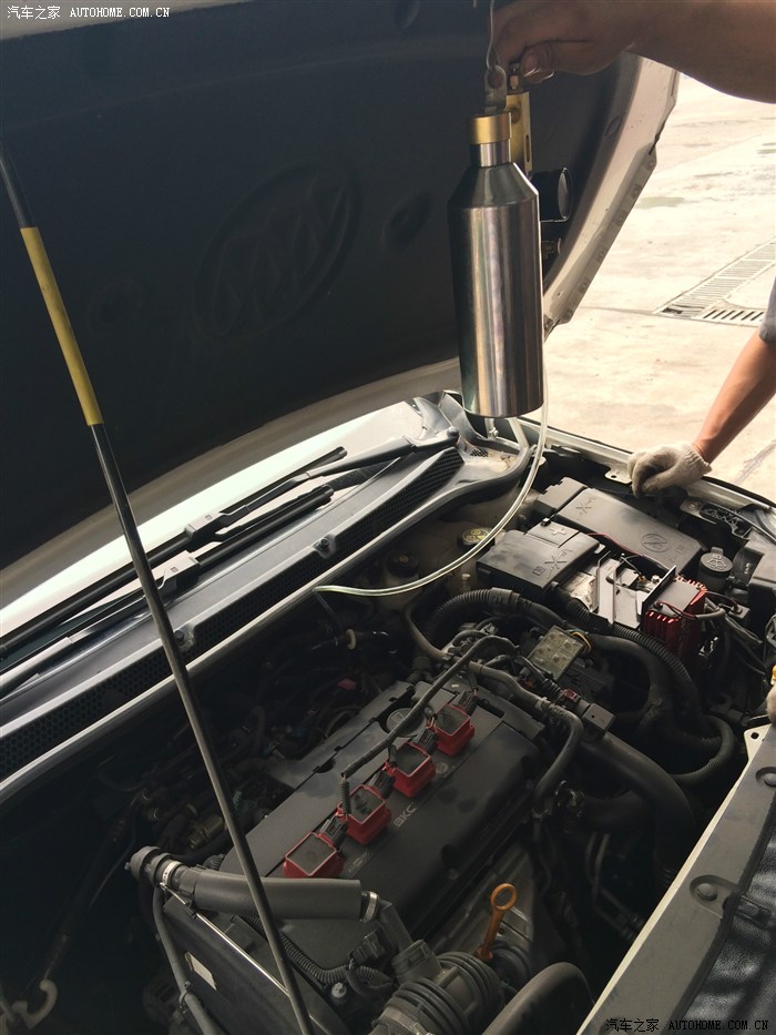由于大白的油底壳就在下面,直接卸掉下面的螺丝反而排的最干净,排完以后又用真空管给我吸了一下,效果一般,不过也真吸出了一点剩油。