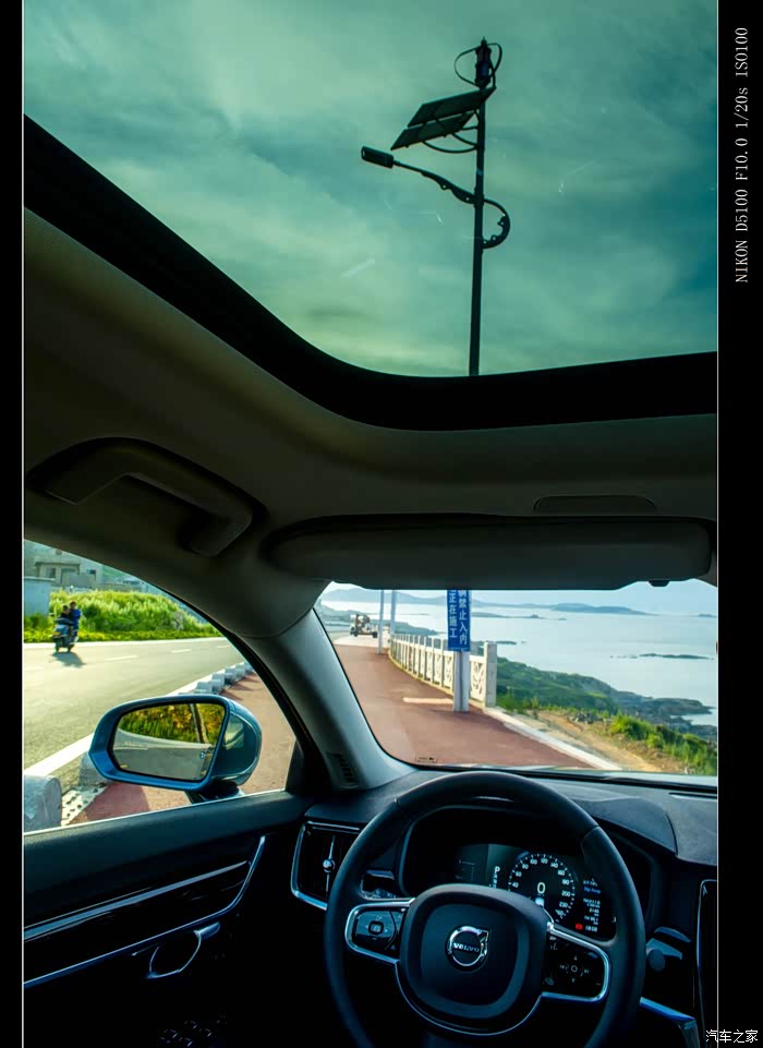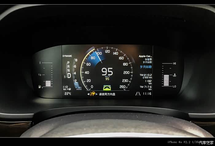 1.排队辅助系统:6月份福建几乎都是雨,第一次开S90上高速就遇到大暴雨,在大雨滂沱的高速路上试了排队辅助系统(向别人介绍的时候就是说半自动驾驶),设定好时速,看着仪表盘上时速数字下方一个灰色方向盘标志等了几秒钟变成绿色,时速表外圈出现浅绿色曲线,车辆进入半自动驾驶模式,沿着地上的白线自己转向,那一刻还是挺惊喜的。大雨能见度低,发现前方有车辆准备减速时感受到车辆已经在自己减速。打转向灯,自动驾驶就被暂停,绿色方向盘标志呈灰色,待变道完成,转向灯拨正,系统继续运行。如果手离开方向盘大约20秒,仪表盘就会出现黄色图标文字提醒握住方向盘,若是还没握住方向盘,约2秒后会出现声音提醒,再不采取介入措施自动驾驶系统就将关闭。一枚高速巡航利器,但是在市区面对神出鬼没的电摩和加塞还是靠自己的右脚更踏实