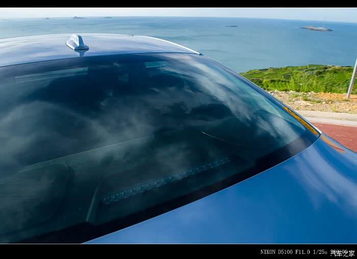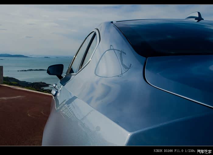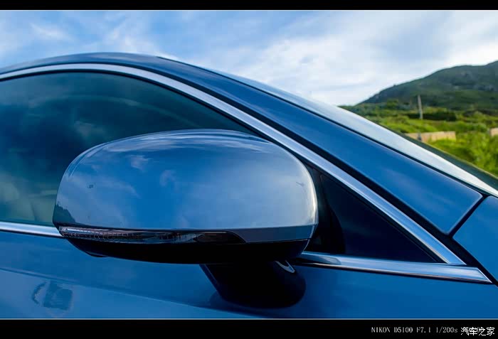 市面上和贻贝蓝最相近的就数英菲尼迪的冰锐蓝了,贻贝蓝在不同天气、光线、角度下颜色差异明显,阴天会呈现偏灰色的效果,强光下蓝色比较淡,在晴天背阴处蓝色的视觉效果又加深了。