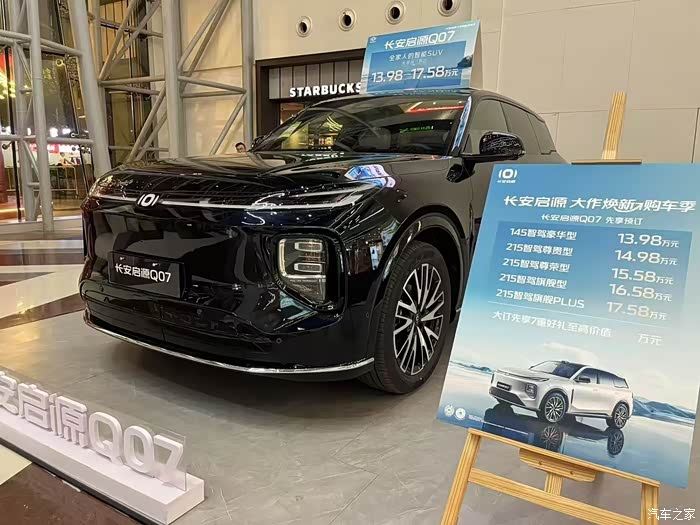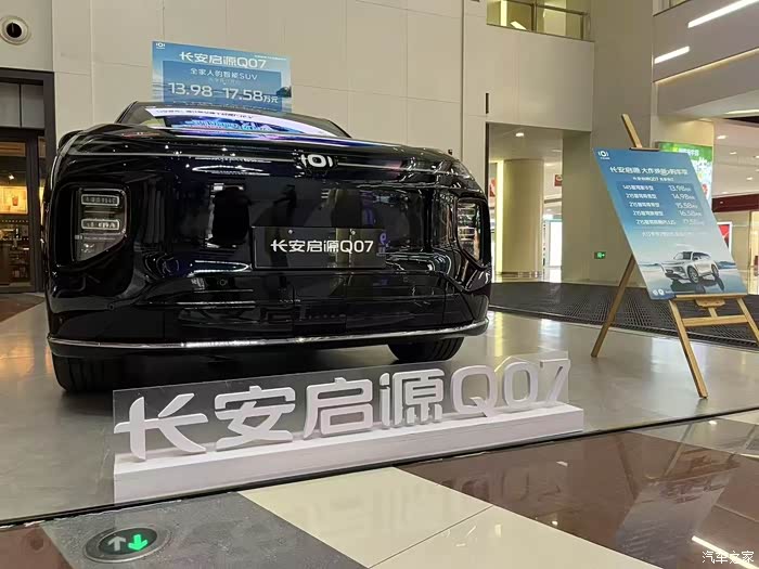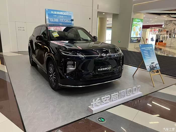 很早的时候就知道Q07要上市了,这不都上市了一段时间了一直没去店里面看看长安启源Q07,今天就出发!进入4S店就看到了启源Q07的,封闭式中网搭配了白色的贯穿LED灯,车身线条流畅,凹凸感十足,只有黑色的展车/试驾车。车身尺寸还问了销售有4837mm*1920mm*1690mm,轴距居然有到2.9米满足全家出行的需求。进入车内映入眼帘的是15.4英寸中控大屏,据说可以左右旋转,名称取向日葵好像,车机系统灵敏度很快这个助手也很聪明,动动小嘴就可以导航、放歌等操作。居然有惊人的49英寸的抬头显示,以后都不需要低头确认一下导航,只想要全程盯着前面,导航直接显示在我的眼前。试驾车是1.5T插混的从4S出发去试驾地点。销售一直和我讲解这辆启源Q07的动力、配置、特点等等等,百公里加速8秒左右,超车和爬坡不费劲。最高版本的满油满电的综合续航达到了1400km,从了0%充到80%仅15分钟,和油车加油一样了,没有续航焦虑了,起步好轻松好快,我油门才踩了一丝丝就马上有反应了。启源Q07真香,果然新车都是越来越优秀。