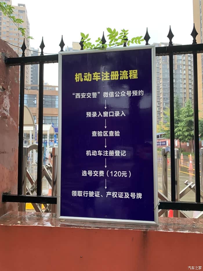 按照网上提示的地址和自己预约的时间,在指定时间到达车管所。这里要说明下,你到达早了也没用,进去的时候是要查验你的时间段码的,只有在时间段内才能进。所以,要是前面排了很多车,但是你的时间段到了,直接进就可以了,门岗会查你的预约时间段的。查的是"西安交警"公众号手机上的预约信息。所以,不要被门口长长的车队唬住。