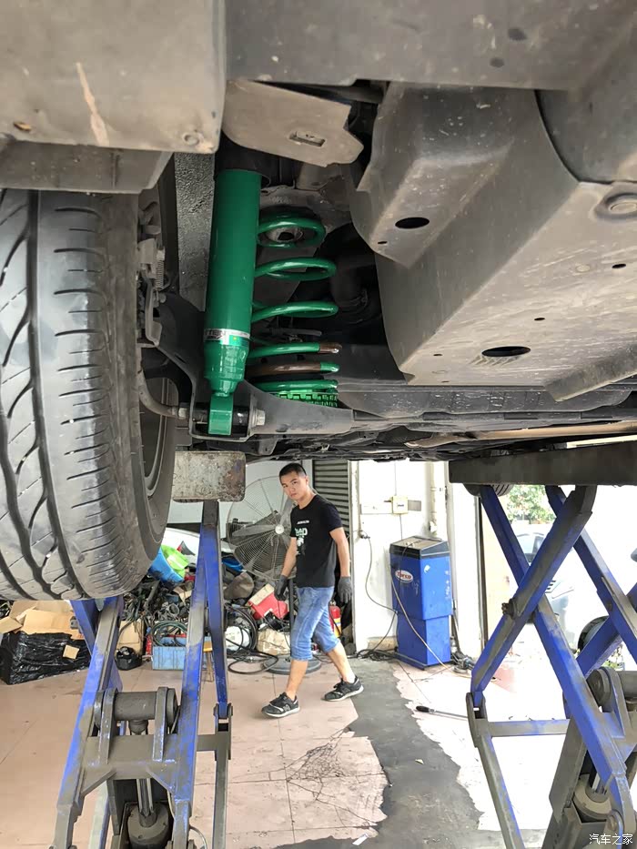 这个状态大概也是玩了差不多,最终我选择了上气动。因为绞牙的通过性确实有些地方你过不去就是过不去,还有一个重要的原因就是家庭新增了一个小成员,为了家人舒服点决定把排气拆掉换回原厂的。让宝宝在车内可以安静点,下一阶段就是更换气动避震。直接上图