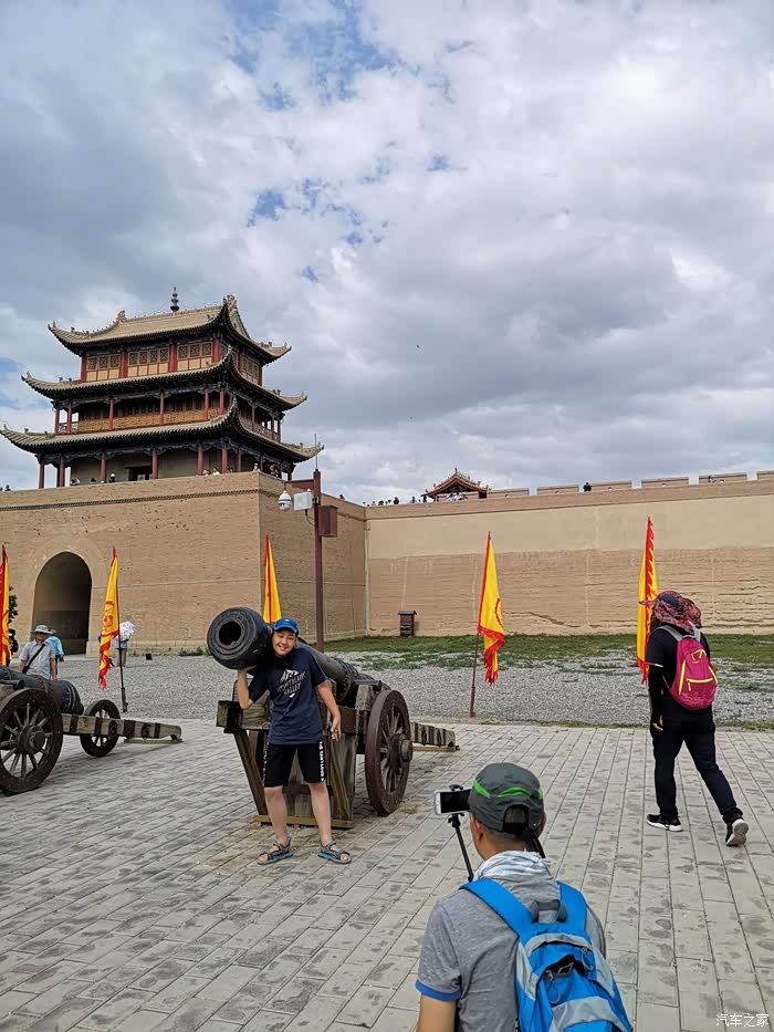 嘉峪关,确实雄伟。不过天公不作美,我们刚要出关欣赏嘉峪关的雄伟时,夹杂着砂砾的大风已经吹起,打在人身上真是疼,还有点冷。可以想象如果是沙尘暴那伤害值肯定是翻倍翻倍的上涨。