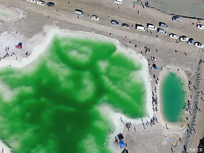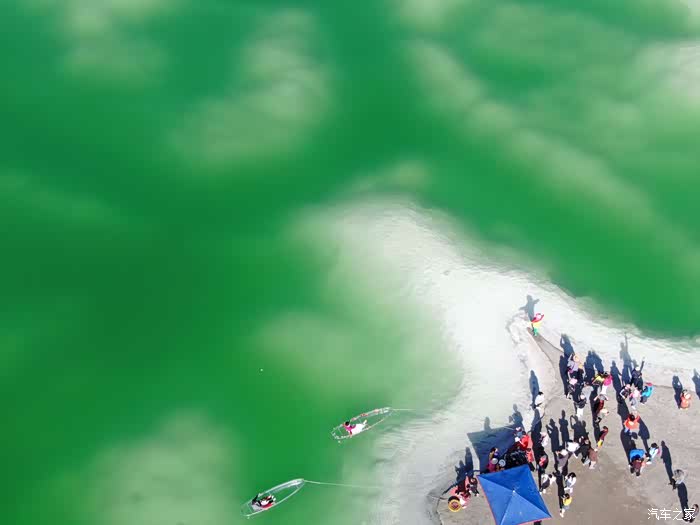 从上面俯视,翡翠湖真的就象一块碧绿的翡翠,就像假的似的。