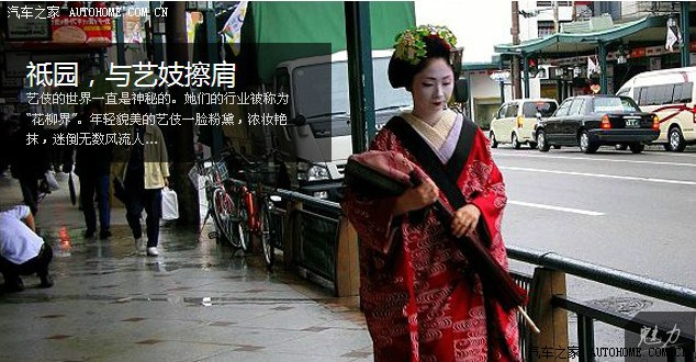 祗园是京都的艺伎区,可以说是京都代表性的地区。白天,附近有7世纪的餐馆和茶馆可供消消遣,路上也可以看到行色匆匆的艺妓与你擦肩而过。而到了傍晚这个地方才真正生动起来,灯笼微明,灯光在纸窗后柔和地闪动,你可以见到实习期间的艺伎正匆忙地工作.