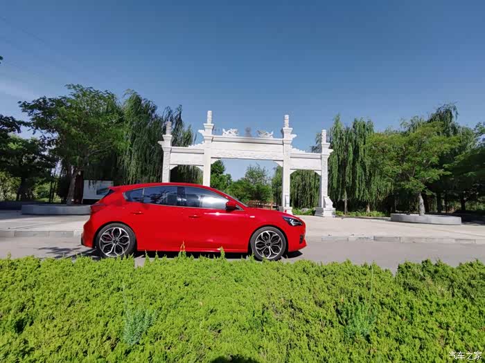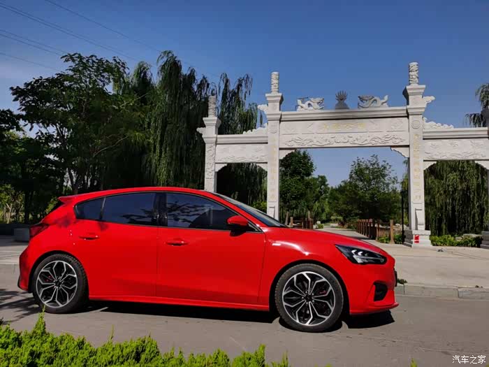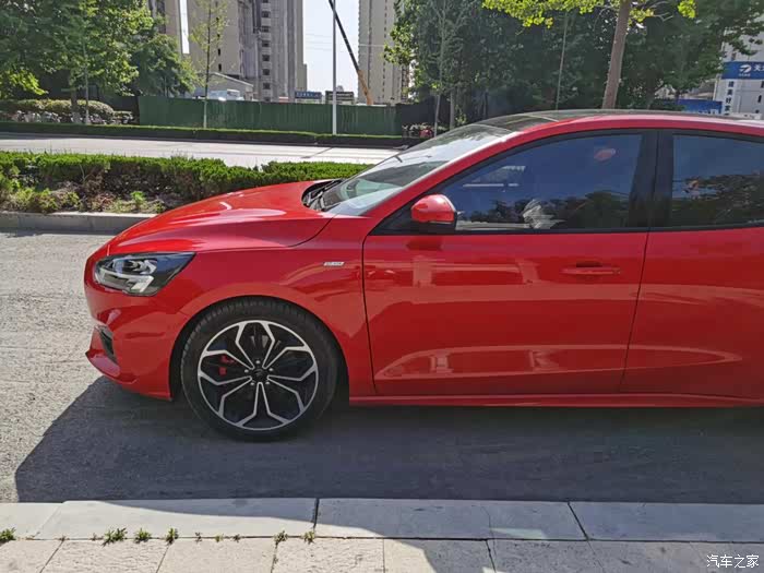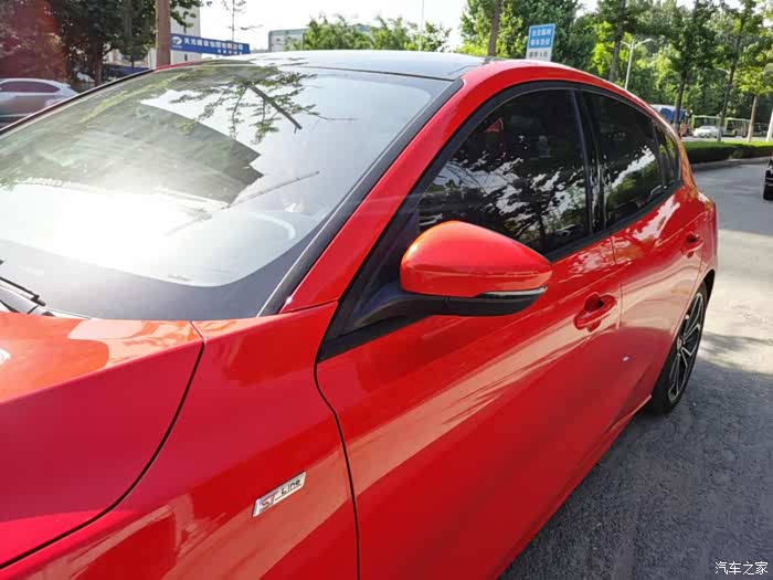 这就是我选择的福克斯,红色惊艳,其实原因也挺多,首先那必须是颜值,外形真的是就是够帅气,可以说是两厢轿车的颜值巅峰了。这个多边形的大嘴加上犀利的车灯,以及车身流线型,给人的感觉很到位。而且我感觉整个车的长宽高的比例很完美,看着就是顺眼。